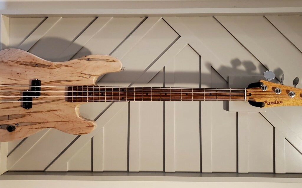 A specially crafted p-bass style guitar made with stunning ambrosia maple, designed and built at Purdue University.