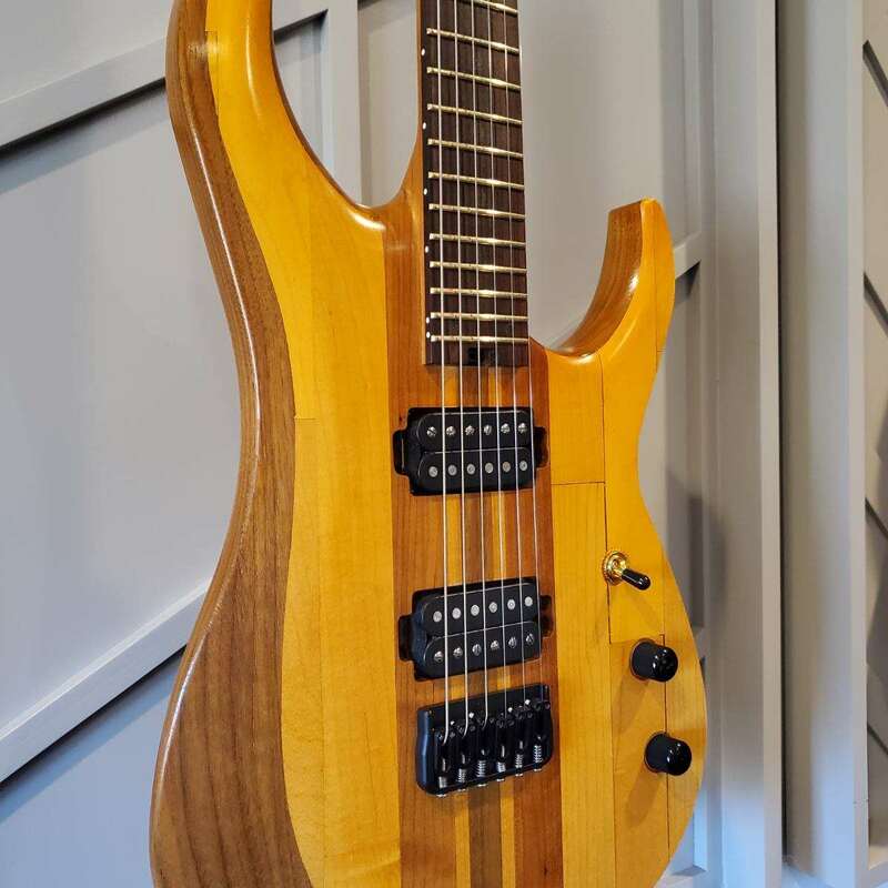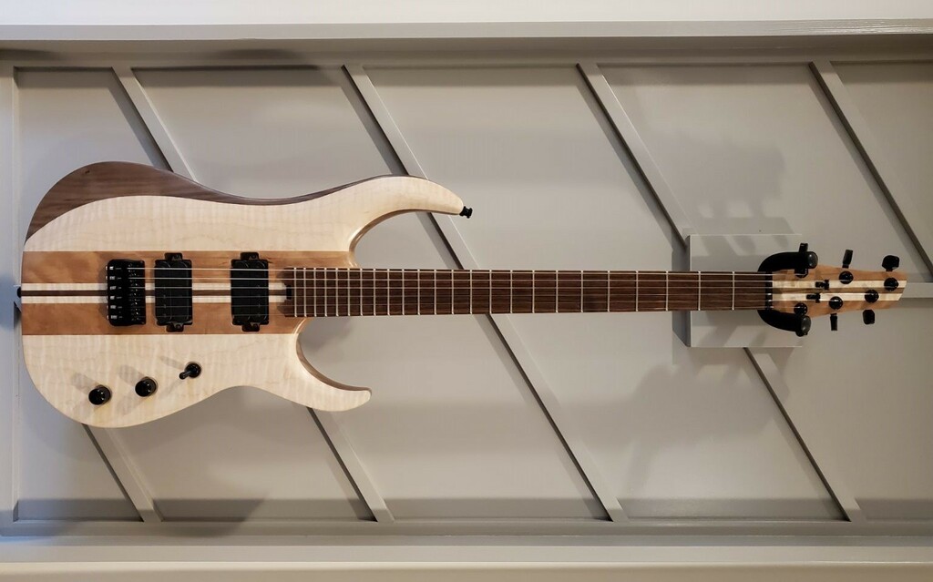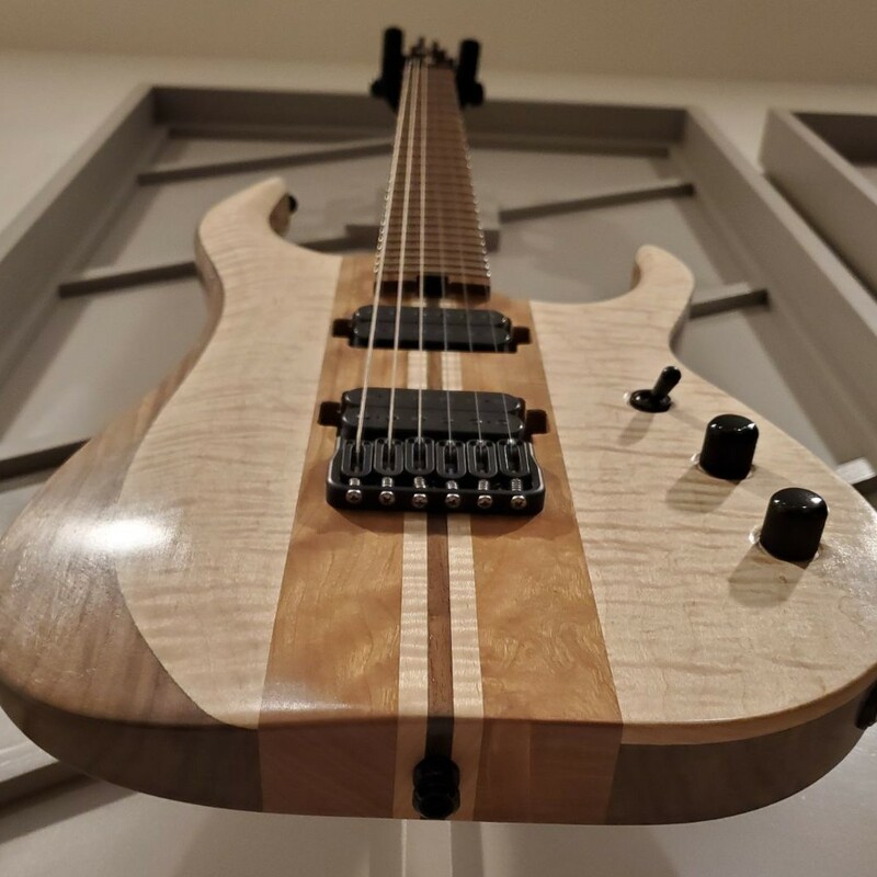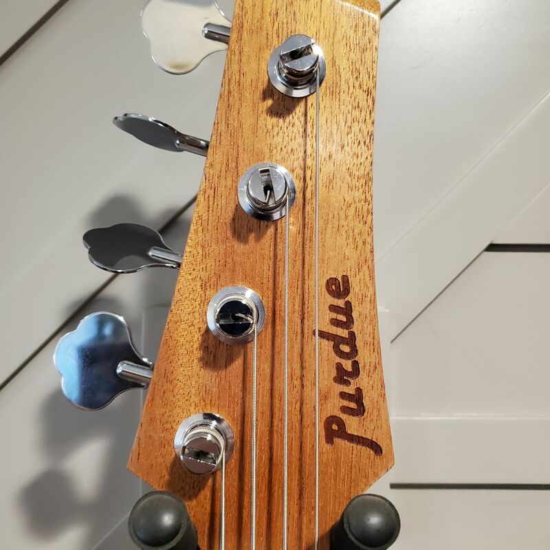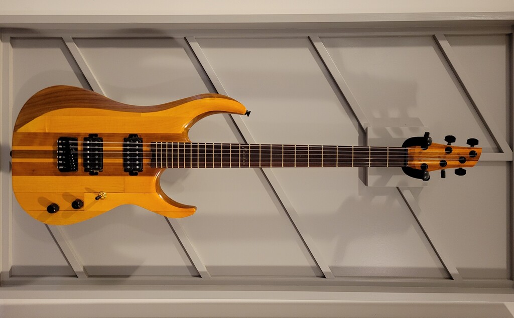 A guitar based on the Mach 1 design, crafted with wood sourced from the iconic Purdue University's Mackey Arena floor.